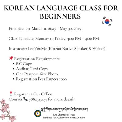 We hereby announce the opening of registrations for the Korean Language Class for Beginners, aimed at providing learners with a structured introduction to the language; interested participants are requested to register at the earliest and refer to the poster for detailed information regarding schedule, venue, and registration procedure.