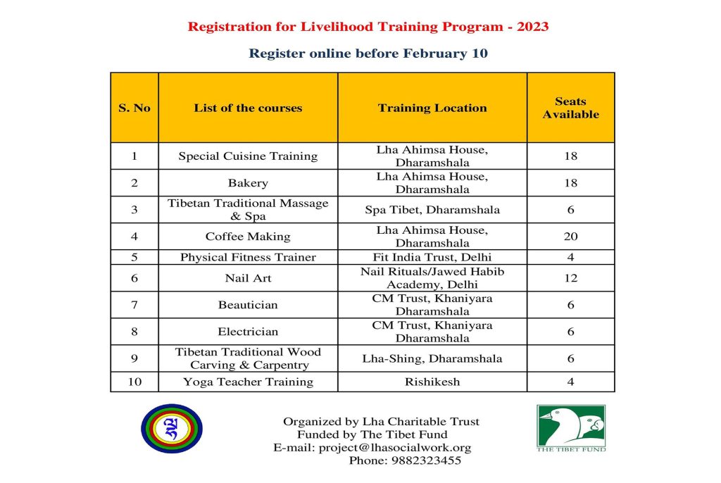 We are delighted to announce the registration for Livelihood Training Program 2023.