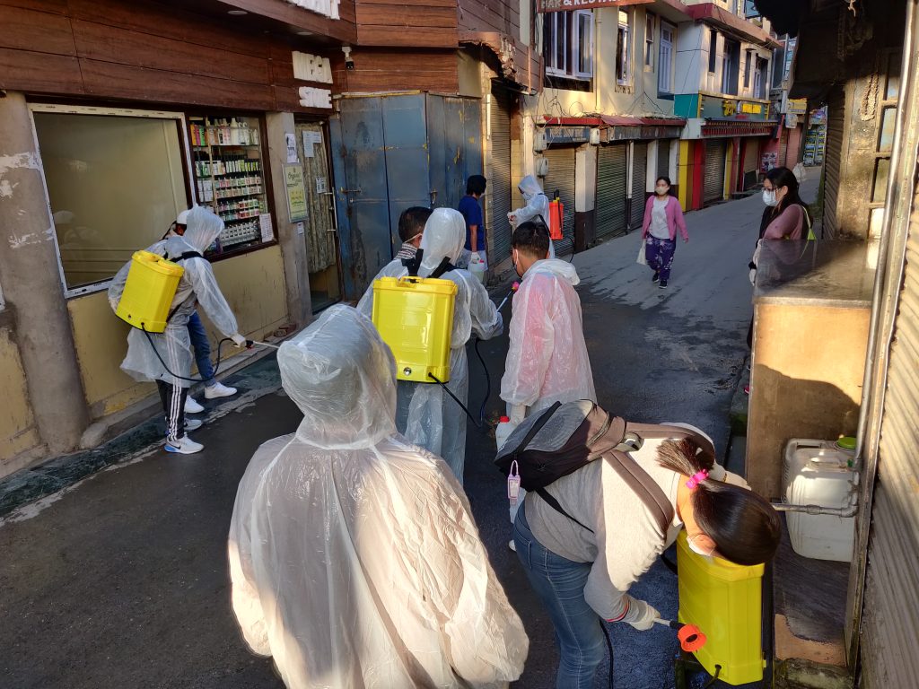 Working with the Tibetan Settlement Office (TSO) Dharamshala, Lha has volunteered to sanitize the whole area of Mcleod Ganj once every month. Since May this year Lha staff have sanitized every nook and corner of Mcleod Ganj and Forsyth Ganj each month, under the TSO initiative to control the rising number of COVID-19 positive cases in Dharamshala.
