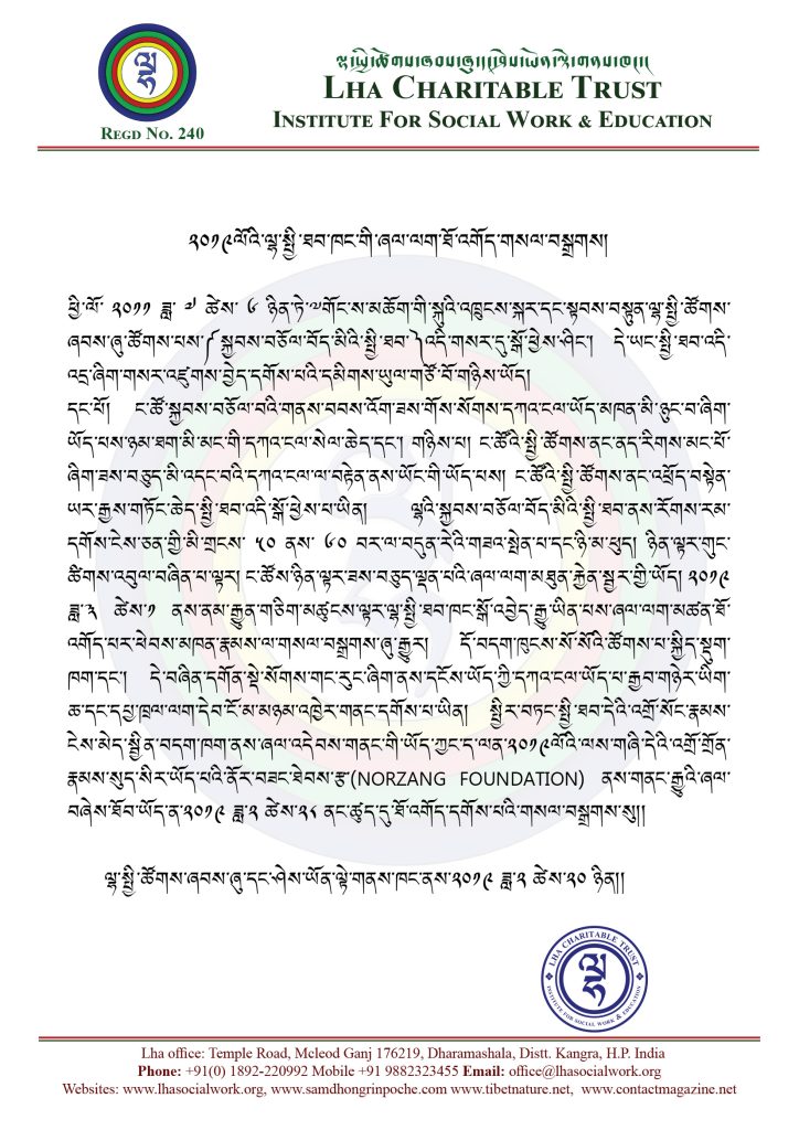 ང་ཚོའི་སྤྱི་ཚོགས་ནང་འཕྲོད་བསྟེན་ཡར་རྒྱས་གཏོང་ཆེད་སྤྱི་ཐབ་འདི་སྒོ་ཕྱེས་པ་ཡིན། ལྷའི་སྐྱབས་བཅོལ་བོད་མིའི་སྤྱི་ཐབ་ནས་རོགས་རམ་དགོས་ངེས་ཅན་གྱི་མི་གྲངས་ ༥༠ ནས་ ༦༠ བར་ལ་བདུན་རེའི་གཟའ་སྤེན་པ་དང་ཉི་མ་ཕུད། ཉིན་ལྟར་གུང་ཚིགས་འབུལ་བཞིན་པ་ལྟར། ང་ཚོས་ཉིན་ལྟར་ཟས་བཅུད་ལྡན་པའི་ཞལ་ལག་མཐུན་རྐྱེན་སྦྱར་གྱི་ཡོད་ན། ༢༠༡༩ ཟླ་༣ ཚེས་༡ ནས་ནམ་རྒྱུན་གཅིག་མཚུངས་ལྟར་ལྷ་སྤྱི་ཐབ་ཁང་སྒོ་འབྱེད་རྒྱུ་ཡིན་པས་ཞལ་ལག་མཚན་ཐོ་འགོད་པར་ཕེབས་མཁན་རྣམས་ལ་གསལ་བསྒྲགས་ཞུ་རྒྱུར། དོ་བདག་ཁུངས་སོ་སོའི་ཚོགས་པ་སྐྱིད་སྡུག་ཁག་དང་། དེ་བཞིན་དགོན་སྡེ་སོགས་གང་རུང་ཞིག་ནས་དངོས་ཡོད་ཀྱི་དཀའ་ངལ་ཡོད་པ་རྒྱབ་གཉེར་ཡིག་ཆ་དང་དཔྱ་ཁྲལ་ལག་དེབ་ངོ་མ་མཉམ་འཁྱེར་གནང་དགོས་པ་ཡིན། སྤྱིར་བཏང་སྤྱི་ཐབ་དེའི་འགྲོ་སོང་རྣམས་ངེས་མེད་སྦྱིན་བདག་ཁག་ནས་ཞལ་འདེབས་གནང་གི་ཡོད་ཀྱང་ད་ལན་༢༠༡༩ ལོའི་ལས་གཞིའི་དེའི་འགྲོ་གྲོན་རྣམས་སུད་སིར་ཡོད་པའི་ནོར་བཟང་ཐེབས་རྩ་(NORSANG FOUNDATION)ནས་གནང་རྒྱུའི་ཞལ་བཞེས་ཐོབ་ཡོད་ན་༢༠༡༩ ཟླ་༢ ཚེས་༢༨ ནང་ཚུད་དུ་ཐོ་འགོད་དགོས་པའི་གསལ་བསྒྲགས་སུ།།